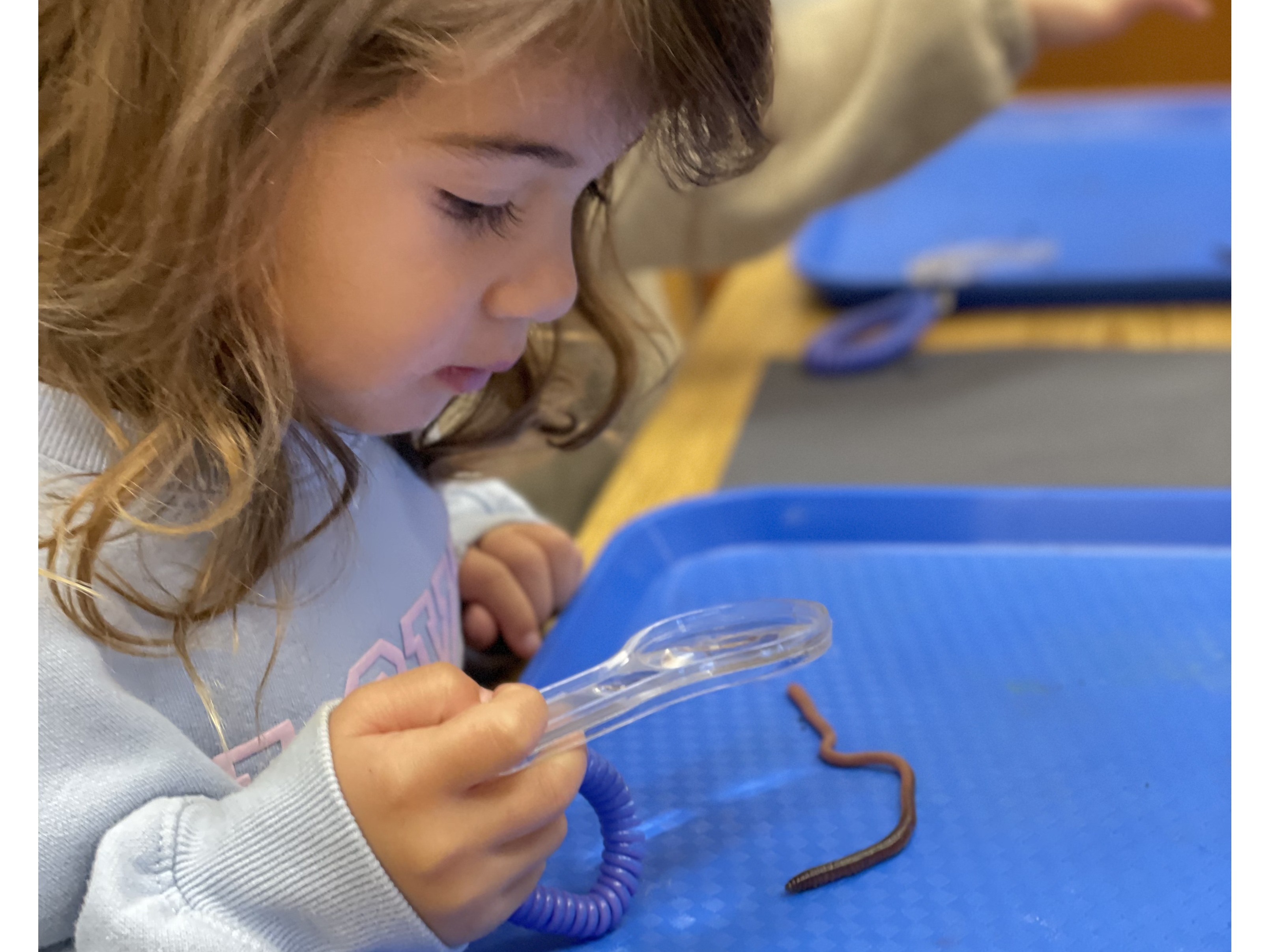 Our three-year-olds focus on the plant and animal life in and around our nature center. They begin their year exploring the animal world, meeting woodland inhabitants such as squirrels and opossums, owls and woodpeckers, snakes, insects, and spiders. In the spring, their focus shifts to the investigation of trees, wildflowers and mushrooms. Every class includes a walk in the woods, weather permitting. These adventures turn the forest into a fabulous hands-on learning lab.